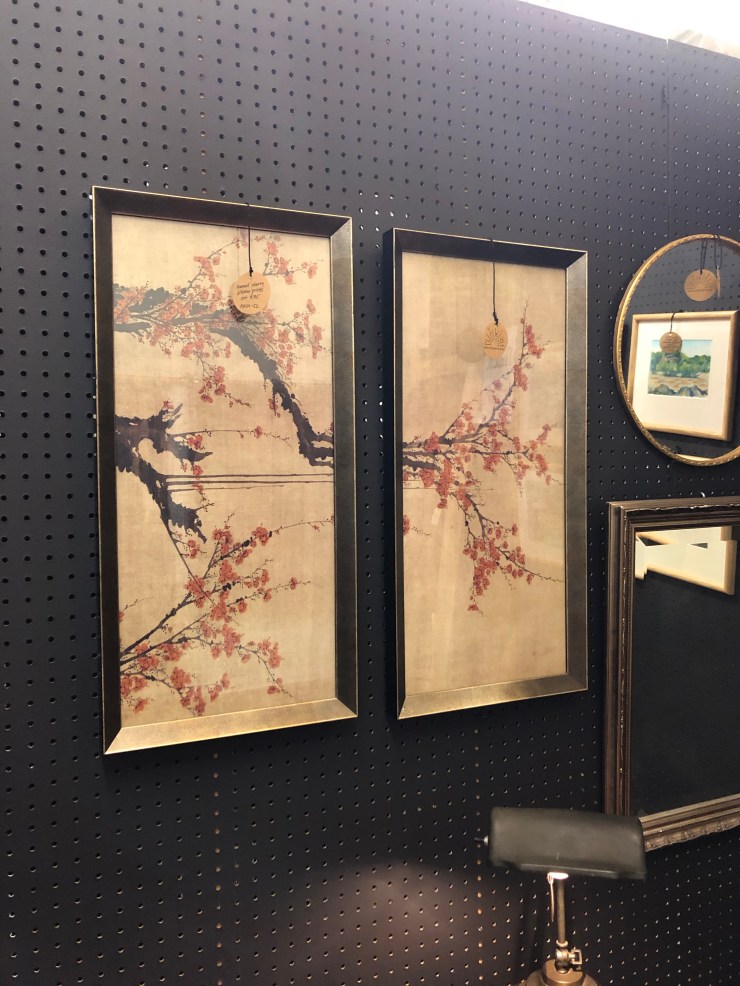 Details: Cherry blossom imagery forming a diptych display. Lovely frames. Originally sold as a limited edition polyptych from Crate and Barrel, now discontinued.